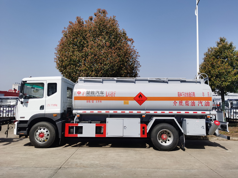 上裝配置:汽油、柴油、煤油介質(zhì):公告容積為12.7方,加油機(jī)安裝在工具箱內(nèi),罐體**容積為13方. 整車尺寸(mm):8350×2500×3155. 總質(zhì)量18000 Kg,整車額定載質(zhì)量:10105/10040 Kg,整備質(zhì)量:7765Kg; 罐體尺寸:(長×長軸×短軸) (mm): 5700×2000×1400.罐體常配為單倉,罐體厚度大于等于4.2MM,帶山東齊魯油泵,泵箱配歐標(biāo)拉手鎖,一個單呼吸閥的歐標(biāo)罐口、一個海底閥,兩個自流閥,歐標(biāo)一套(含歐標(biāo)罐口,海底閥,油氣回收,防溢流探桿,下裝油口);C:可選裝大流量加油機(jī)(上海柏萊稅控加油機(jī)、三金稅控加油機(jī)、中升稅控加油機(jī))帶15米自動回位卷盤,兩根罐體等長輸油管、兩個滅火器,一個防火帽,靜電卷盤、安全告示鐵牌、工具箱、全車歐式鎖、牌照燈、車尾拖車鉤開孔、其余標(biāo)配。D:油漆:鋁粉銀灰,易燃液體貼“易燃”標(biāo),貼反光條、反光帶,罐體尾部反光板、安全告示。