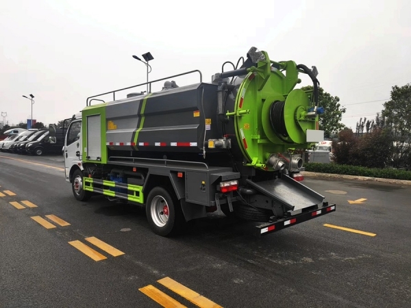 清洗部分:3方水箱,采用4mmQ235優(yōu)質(zhì)碳鋼板,水箱兩側(cè)消防接口進(jìn)水,工具箱一個(gè)。采用德國品浮高壓泵215升流量,22兆帕,配60米內(nèi)徑19#高壓管,10個(gè)大小不同噴頭一套, 后置式清洗卷盤,帶淋管裝置(用于淋洗高壓管疏通管道過后上面殘留的污物),帶氣吹水功能(用于吹出每次高壓管工作完以后內(nèi)部殘留的水漬,防止天冷結(jié)冰影響下次使用)